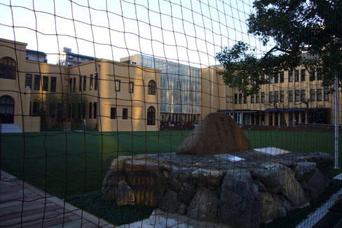 当たり前だけど休館で中は見れなかったけど、校庭に敷き詰められた人口芝の雰囲気が面白くて、
